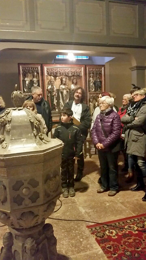 Einem einführenden Vortrag zur Geschichte von Reformation und Dreißigjährigem Krieg schloss sich ein Rundgang durch die Kirche an, bei dem besonders die kunsthistorischen Kleinode der Kirche im Mittelpunkt standen.